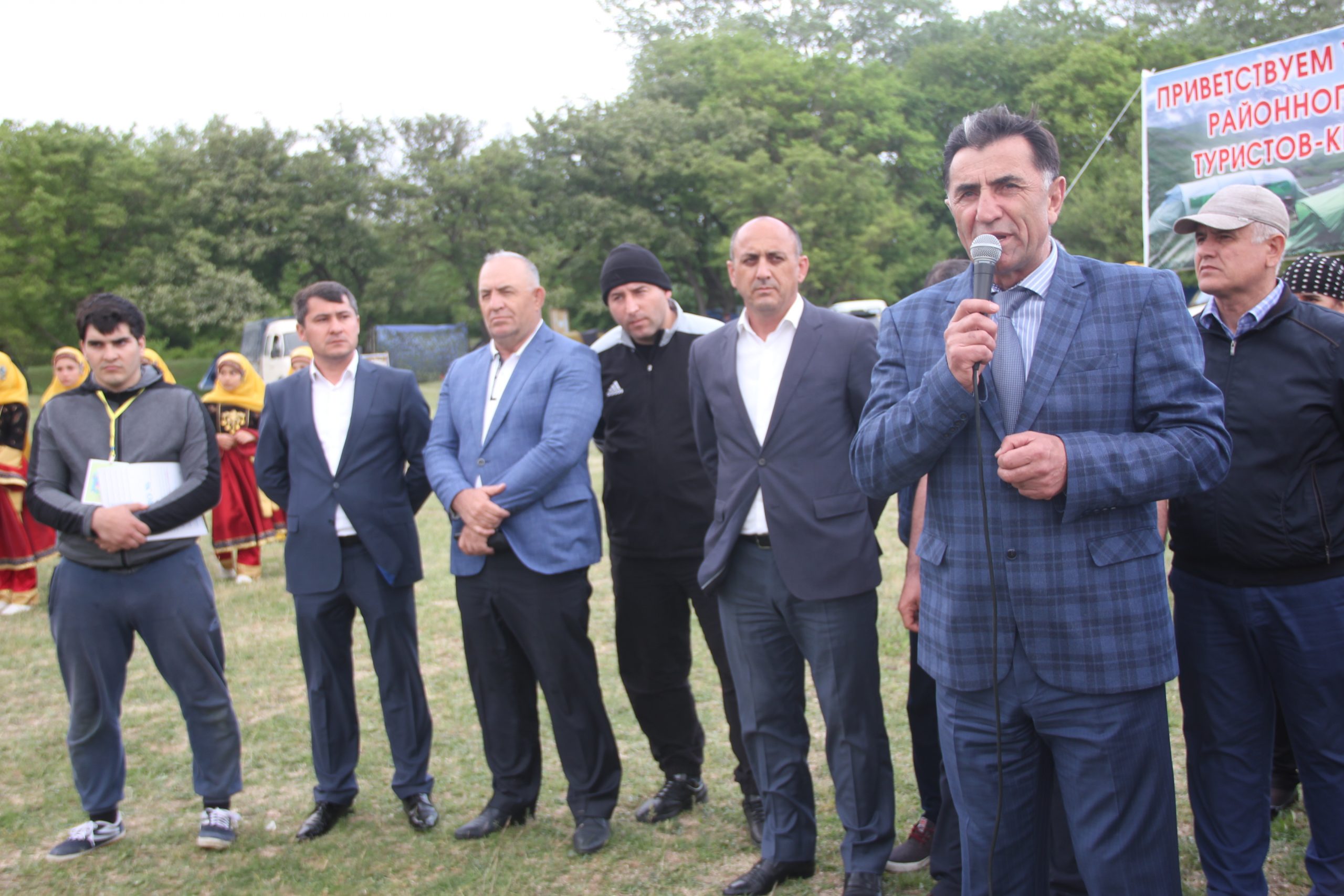 Главный судья соревнований Садикгаджи Садиков доложил о готовности команд к открытию Кизилюртовского районного слета туристов — краеведов среди школьных команд, посвященного 100 — летию системы дополнительного образования в России и 73 — й годовщине Победы в Великой Отечественной войне.