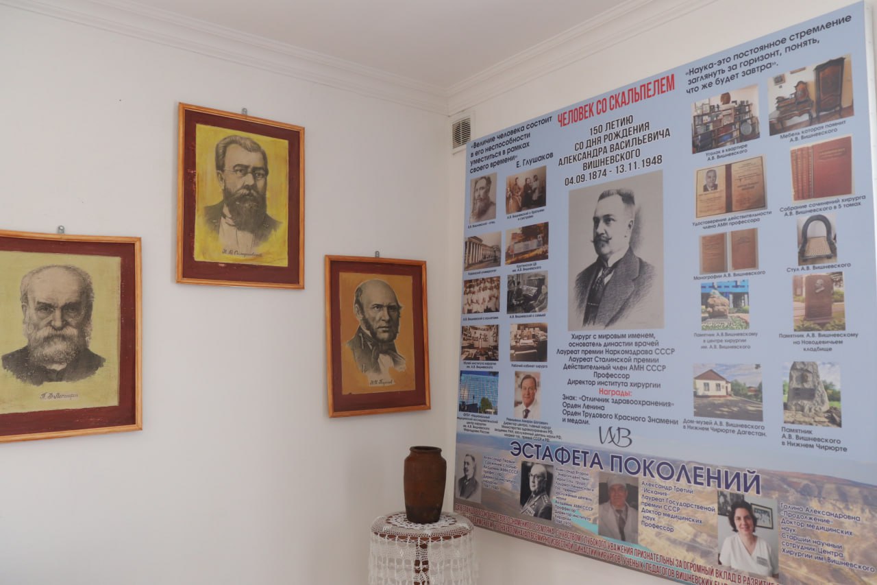 Напомним, на родине Александра Васильевича, в сельском поселении Нижний Чирюрт, по улице Вишневского, находится Дом-музей имени А.В.Вишневского – великого русского ученого, основателя школы и династии российских хирургов. Жители села в целях сохранения памяти о нем открыли музей в доме, где прошло детство будущего великого хирурга.