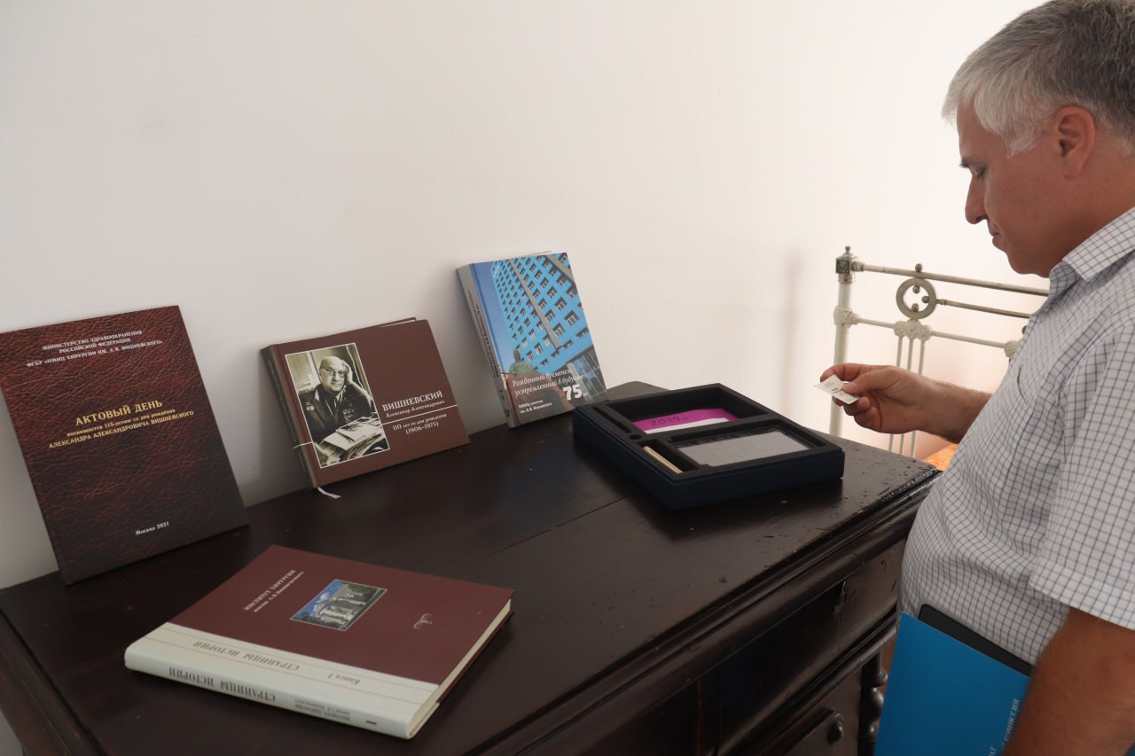 В память о встрече в дар Дому-музею от врачей-коллег ожогового Центра Махачкалы Андрей Алексеев передал памятные подарки.