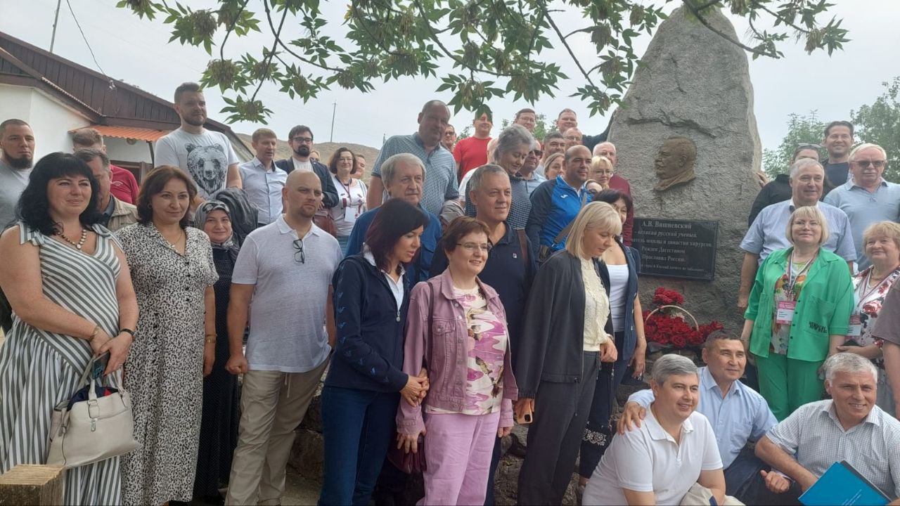 Поприветствовала гостей учитель-краевед г. Кизилюрта Зайнаб Мурадисинова, которая много лет дружит с династией Вишневских и собирает материалы об их исследовательских работах: «Дорогие друзья! Мы рады приветствовать вас на Родине Александра Васильевича Вишневского. Мы чтим память нашего знаменитого земляка, мы гордимся им. Мы гордимся, что началом всемирно известной династии хирургов, ученых, педагогов Вишневских — был Нижний Чирюрт -наша дагестанская земля! Добро пожаловать!»