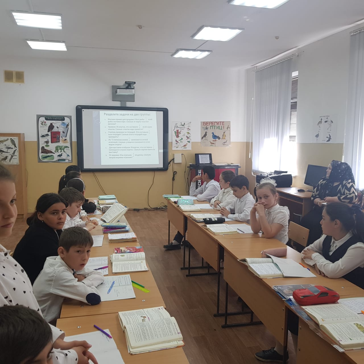 В частности, Н. Абакарова провела показательный урок по математике в 1 «а» классе на тему «Число и счёт. Арифметические действия»; Ю. Гимбатова в 5 «б» классе урок математики по теме «Нахождение части целого и целого по его части».
