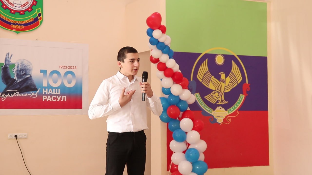 По такому знаменательному случаю зал был украшен шарами, портретами народного поэта, плакатами с его крылатыми фразами, были представлены сборники произведений Расула Гамзатова. В этот вечер здесь царила атмосфера праздника.