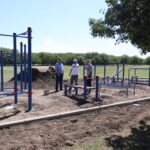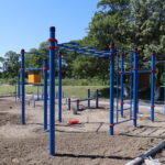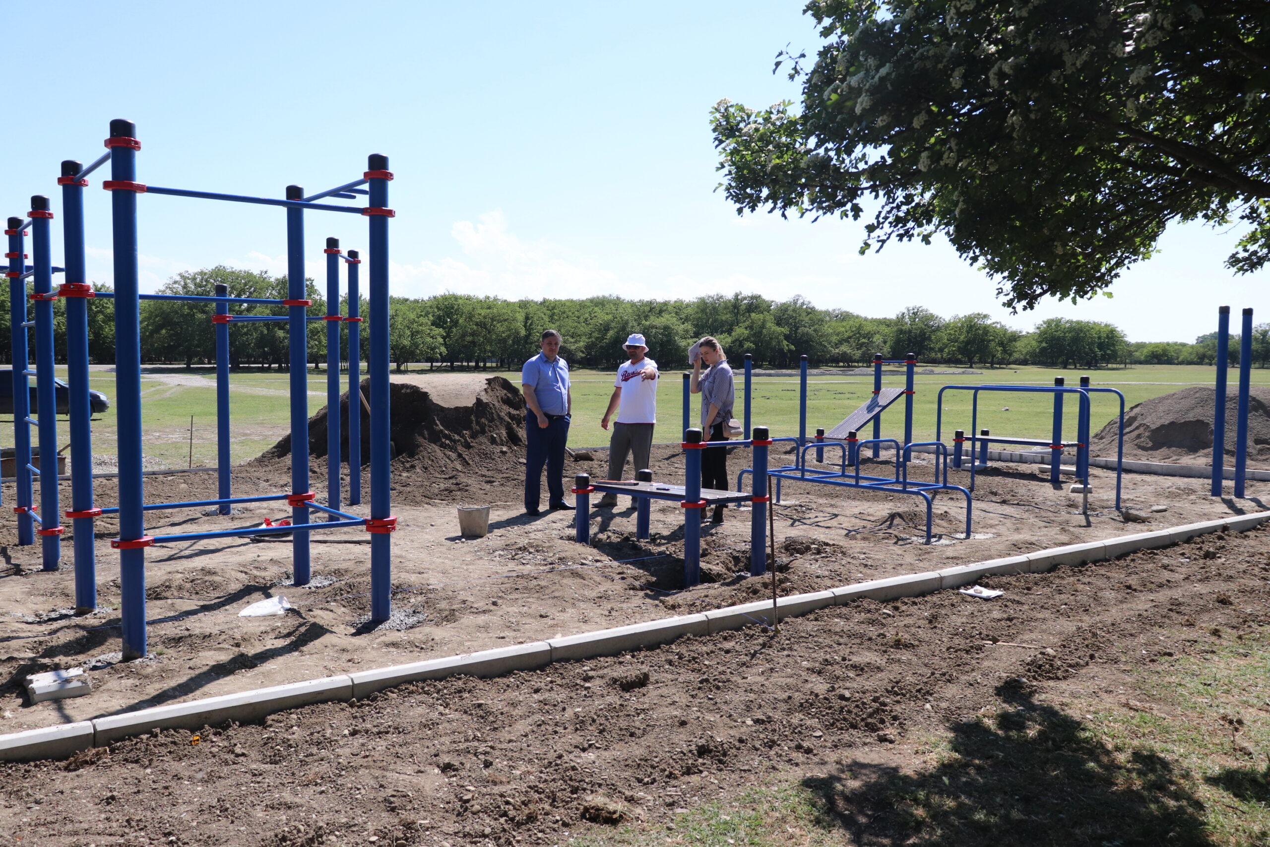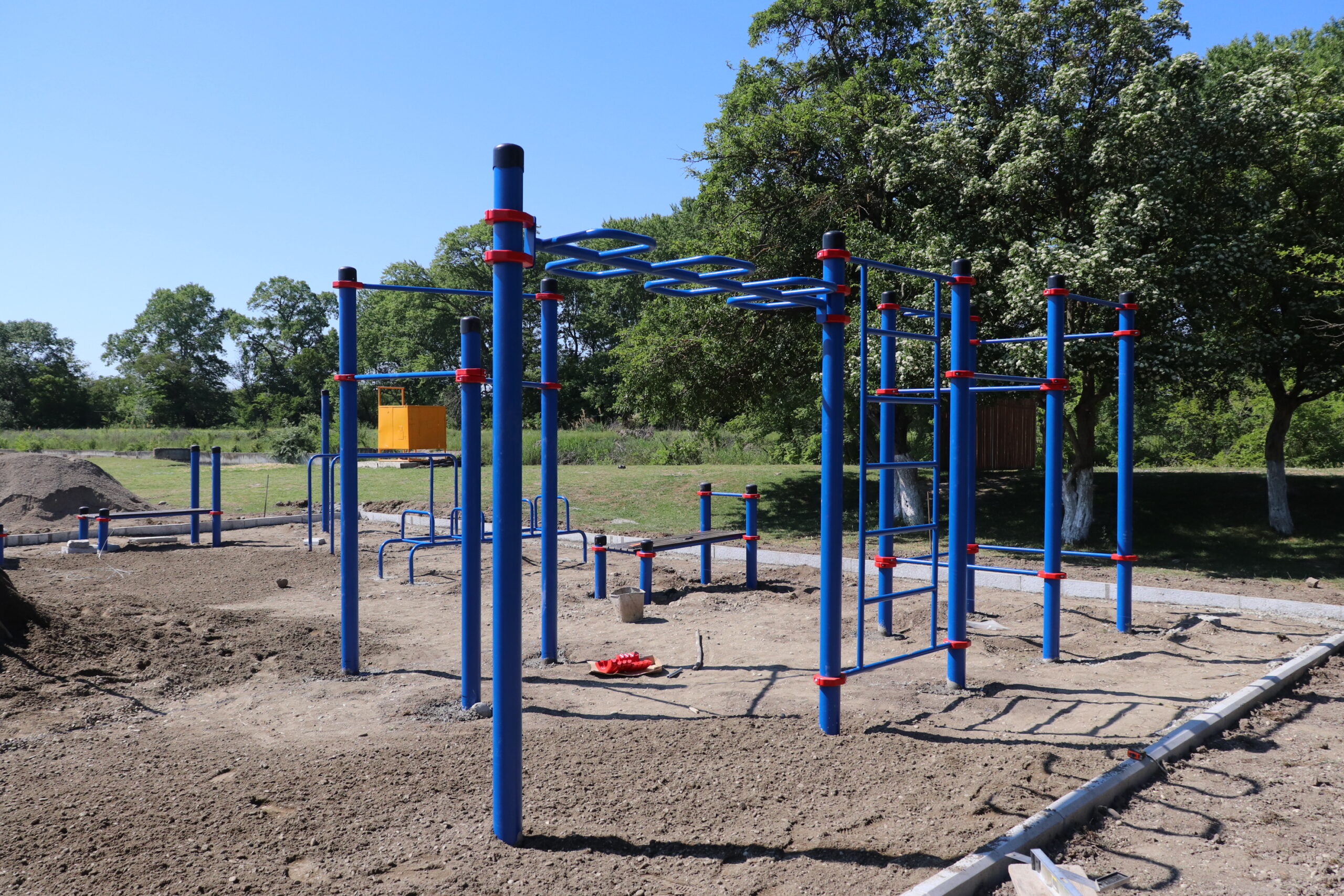 Спортивный комплекс на открытом воздухе, состоящий из турников, лестниц, горизонтальных лестниц, брусьев, шведских стенок и других конструкций занимает площадь 150 квадратных метров. Территория оформлена бордюрными бетонными блоками, установлены спортивные снаряды, идет выравнивание основания.