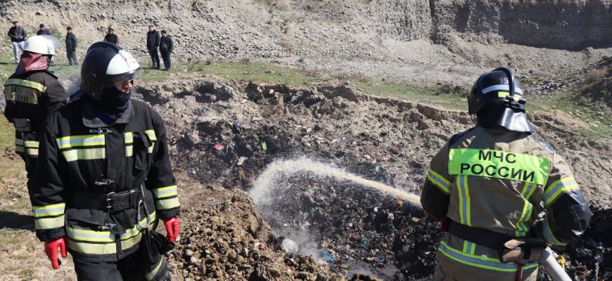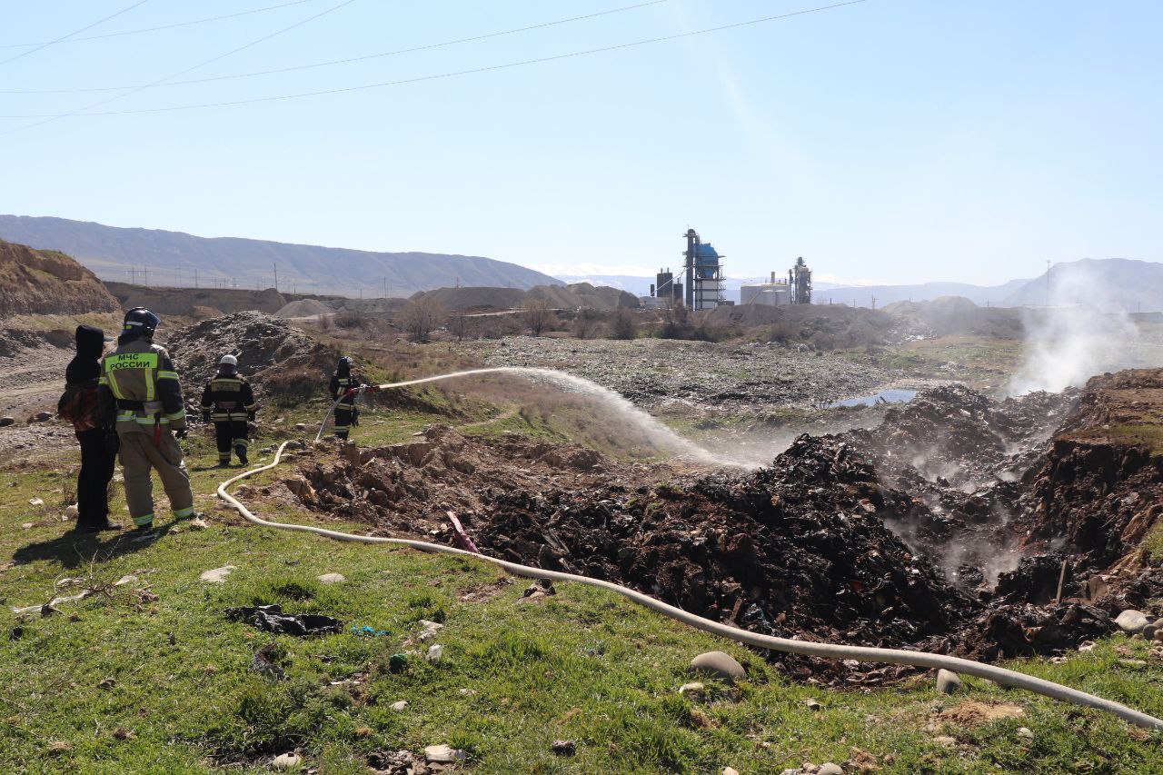 Руководство района обратилось с просьбой оказать содействие в устранении этой проблемы к начальнику Пожарной части №15 г. Кизилюрта РД Пирбудагу Абдулмеджидову. И уже сегодня, 30 марта, работники пожарно-спасательной части приступили к тушению тлеющей площадки.
