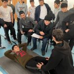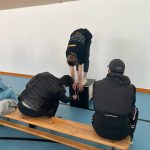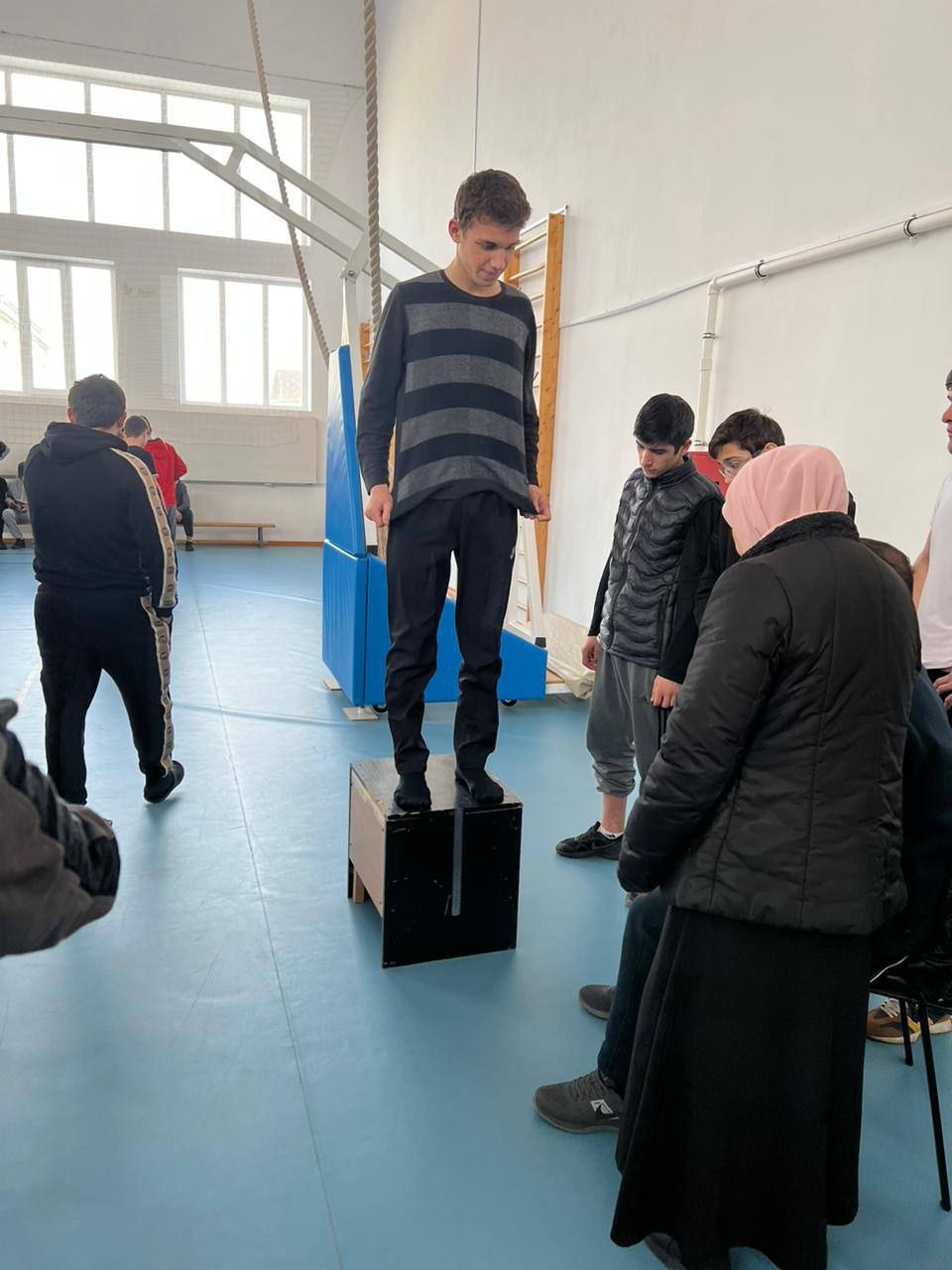 В спортивную программу первого этапа вошли следующие виды испытаний: стрельба из пневматической винтовки, поднимание туловища из положения лежа на спине, прыжок в длину с места, подтягивание в висе на высокой перекладине — юноши, сгибание и разгибание рук в упоре лежа на полу — девушки, наклон вперед стоя на гимнастической скамье. Азарт борьбы возрастал с каждой минутой. Участники сопереживали, старались поддержать своих товарищей в стремлении преодолеть испытания, собрать все силы и достигнуть желаемого результата.