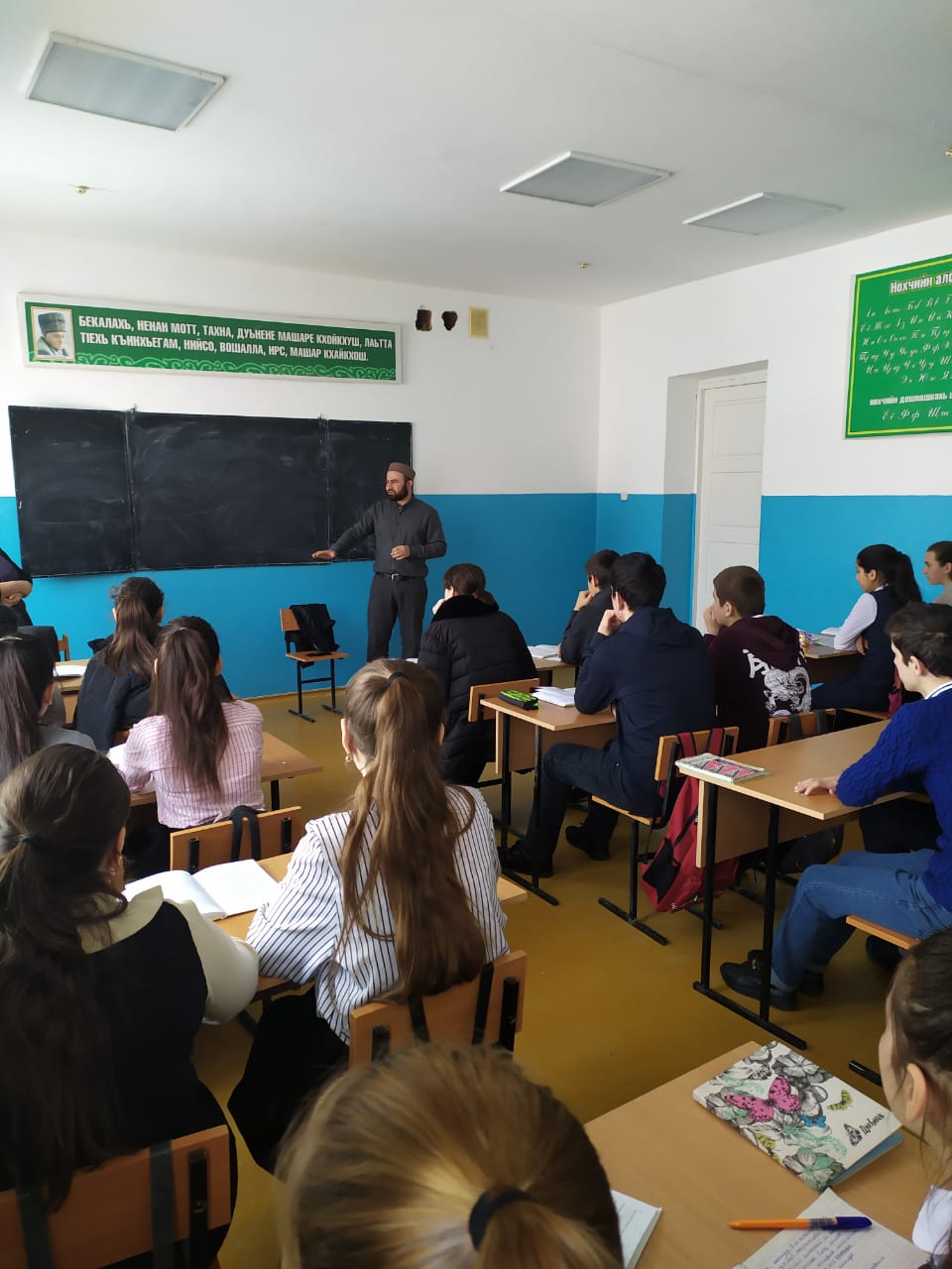 В беседе с учениками приняли участие руководитель отдела просвещения по Кизилюртовскому району Абдула Сайпудинов, имамы сельских поселений Чонтаул Арсланали Аскеров, Кульзеб Магомед Магомеддадаев и представители Антитеррористической комиссии администрации района.