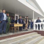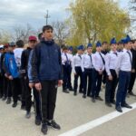 После торжественного построения и поднятия флага начались соревнования старшеклассников в военно-прикладных видах спорта с игровыми элементами, участвовали в смотре строя и песни.