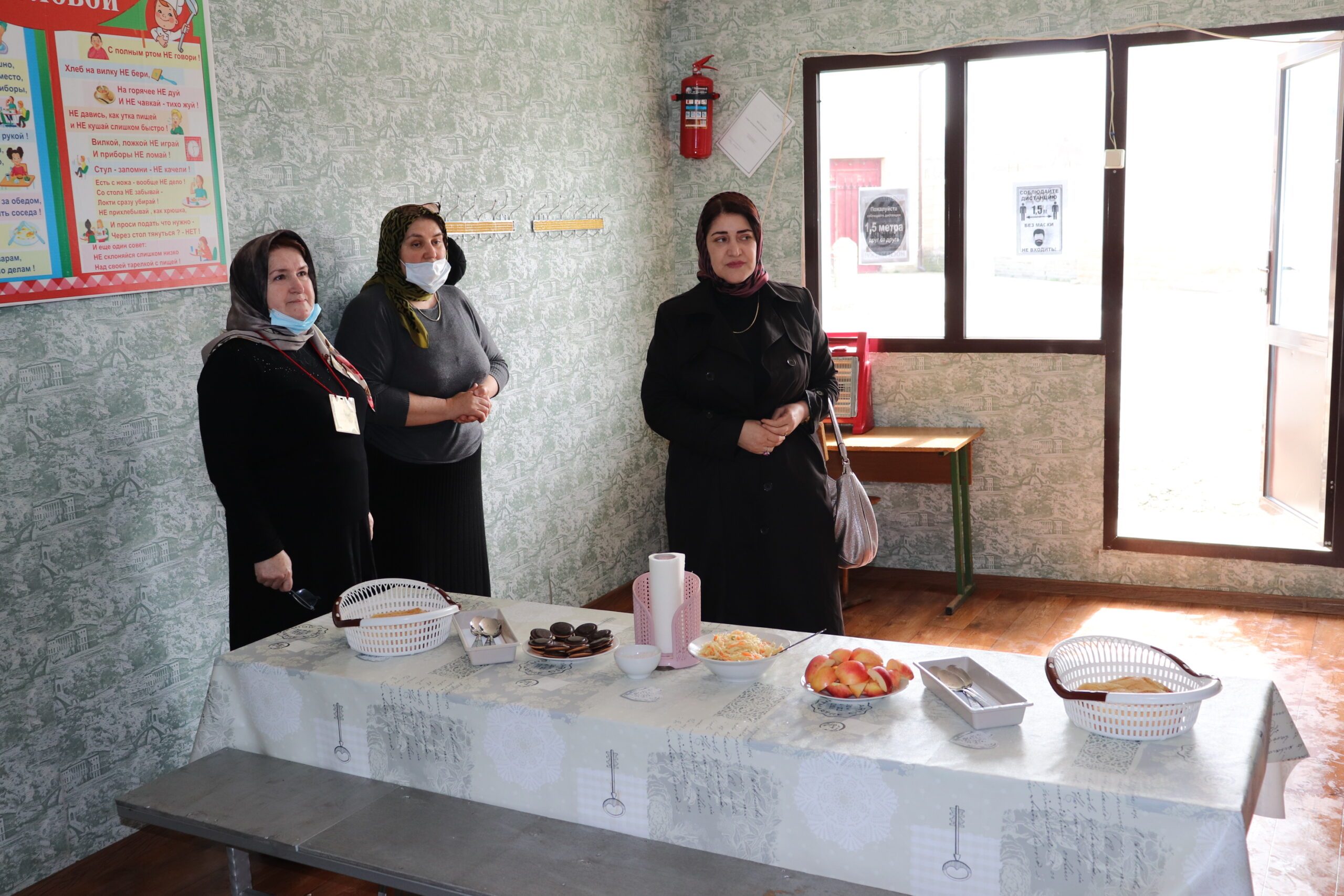 Комиссия Министерства образования и науки Республики Дагестан в рамках выездного дня провела анализ документации по питанию, провериласоблюдение санитарных норм в пищеблоках и складских помещения. В частности, были просмотрены журналыбракежа сырой и готовой продукции, учета искусственной витаминизации, оценки питания, накопительная ведомость, хранение суточной нормы, выполнение предписаний Роспотребнадзора и другое.