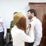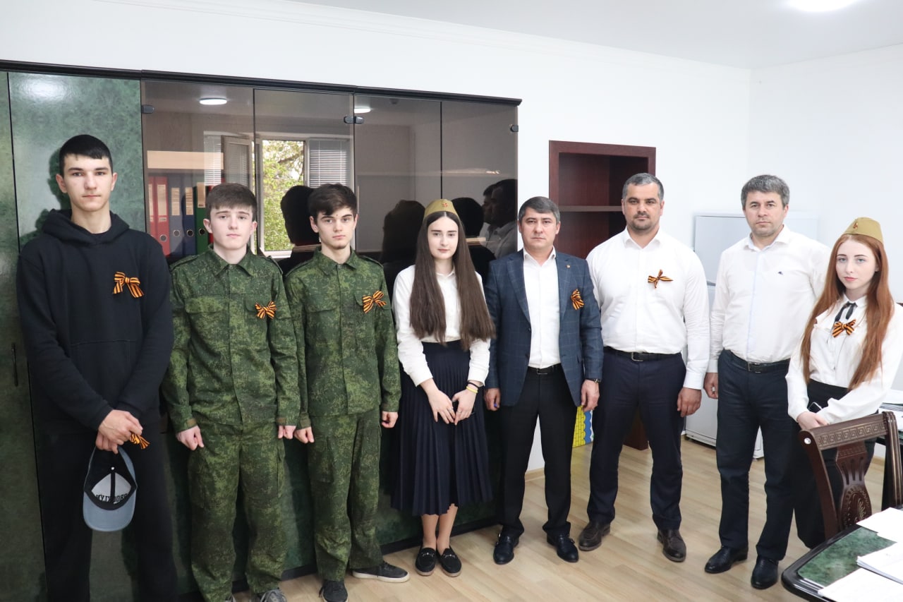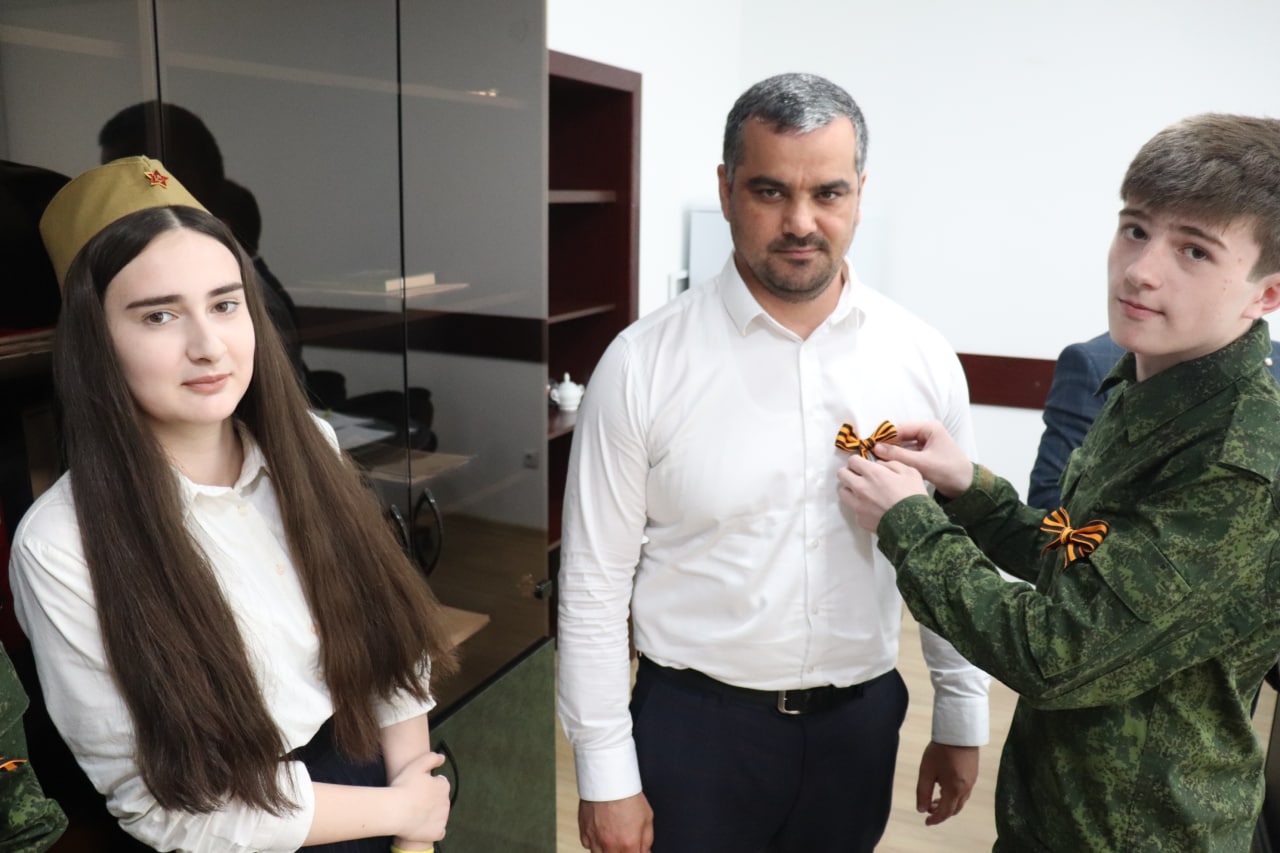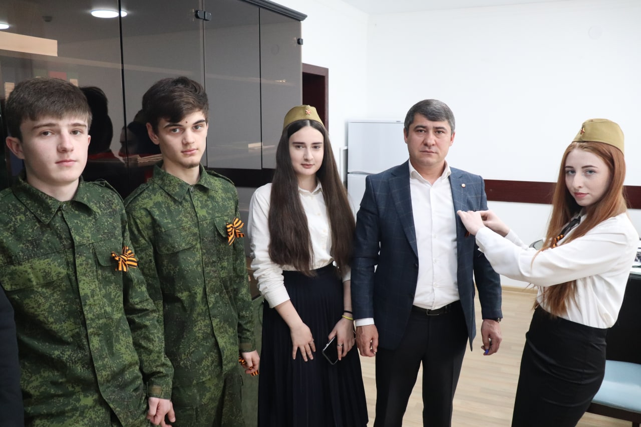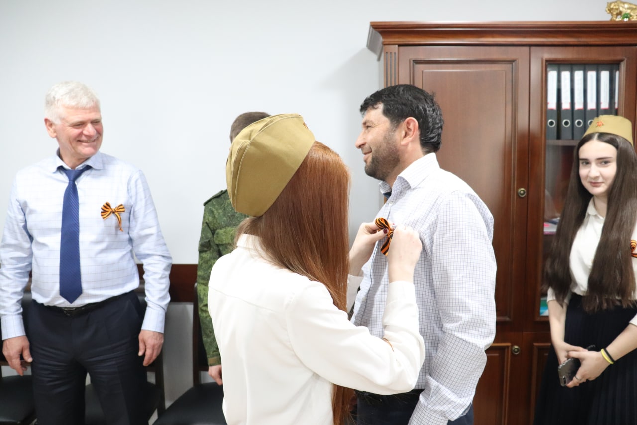 Волонтеры добровольческого центра «Свет добра» в рамках районного марафона «Весенняя неделя добра- 2022» по инициативе районного отдела физической культуры, спорта и молодежной политики, пришли раздать символ Победы работникам администрации района. Первые ленточки волонтёры передали главе Кизилюртовского района Рустаму Татарханову.