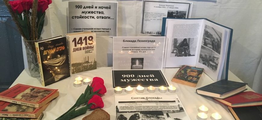Ко дню снятия блокады Ленинграда в библиотеке селения Кульзеб была оформлена выставка «Блокада Ленинграда».