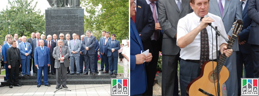Основные мероприятия сегодняшнего празднования начались с возложения цветов на могилу Расула Гамзатова на кладбище у подножия горы Тарки-Тау и к памятнику поэту у Республиканского Русского драматического театра им.М.Горького.