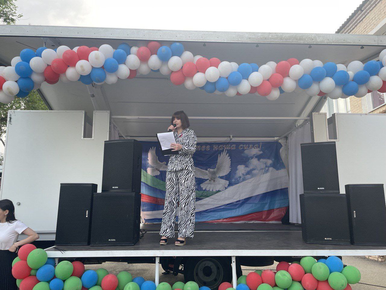 Ведущая мероприятия — начальник отдела культуры и туризма Асият Джанавова отметила: «Этот праздник, несмотря на молодость, прочно вошел не только в официальный календарь торжественных дат, но и в сердца всех, кто с гордостью именует себя россиянином. Только совместными усилиями мы сможем сохранить и преумножить наши сегодняшние достижения, используя их для блага людей, благополучия нашего района и страны в целом».