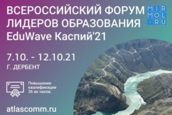 С 7-12 октября в городах Дербенте и Махачкале пройдет второй Всероссийский форум лидеров образования EduWave Каспий`21. На форуме будут представлены лучшие управленческие и педагогические практики руководителей школ, дошкольных учреждений и органов управления образования со всей России.