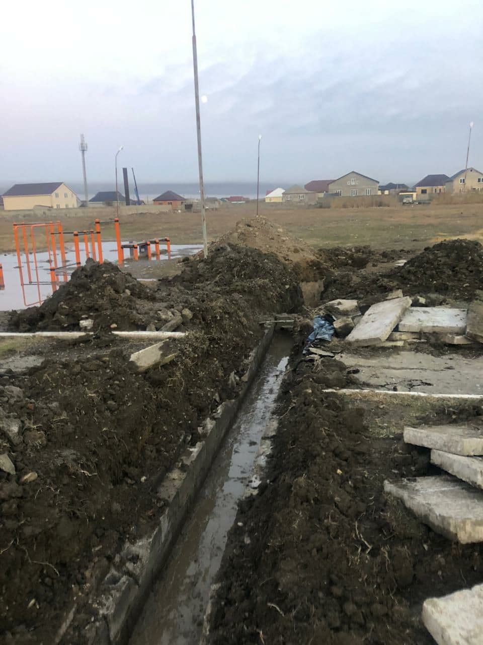 «Из-за того, что земля мокрая, водоотвод, который весит почти тонну, утрамбовывается ниже стандартного показателя, поэтому нужно подождать пока почва просохнет», — сказал Ширван Атаев.