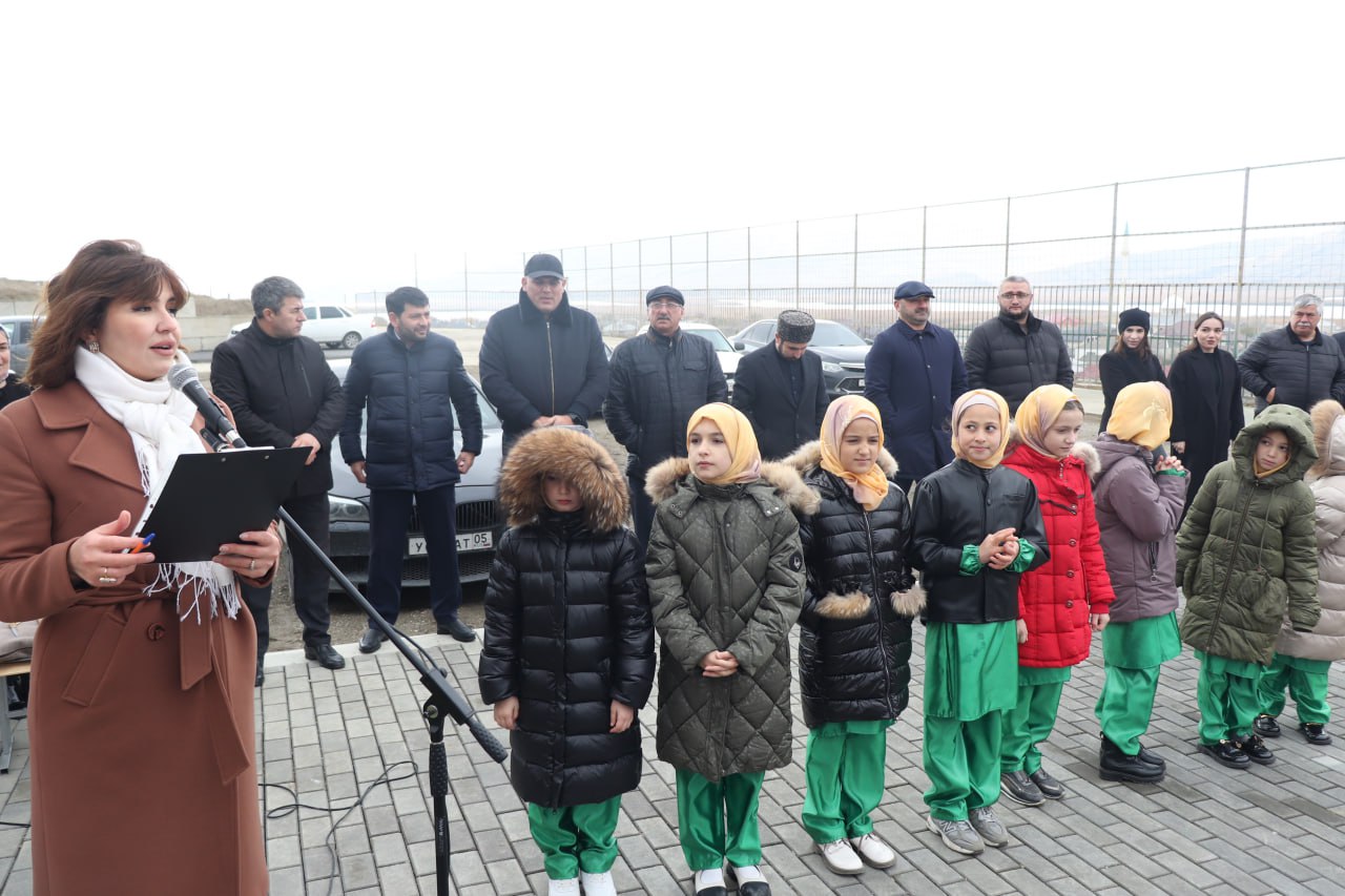 После торжественного разрезания красной ленты к собравшимся гостям и жителям района обратилась начальник отдела культуры и туризма Асият Джанавова. «Лента перерезана, площадку объявляю открытой! Прошу всех гостей и жителей села пройти на поле, сегодня у нас пройдут здесь соревнования по мини-футболу между местными командами»,-сказала она.