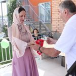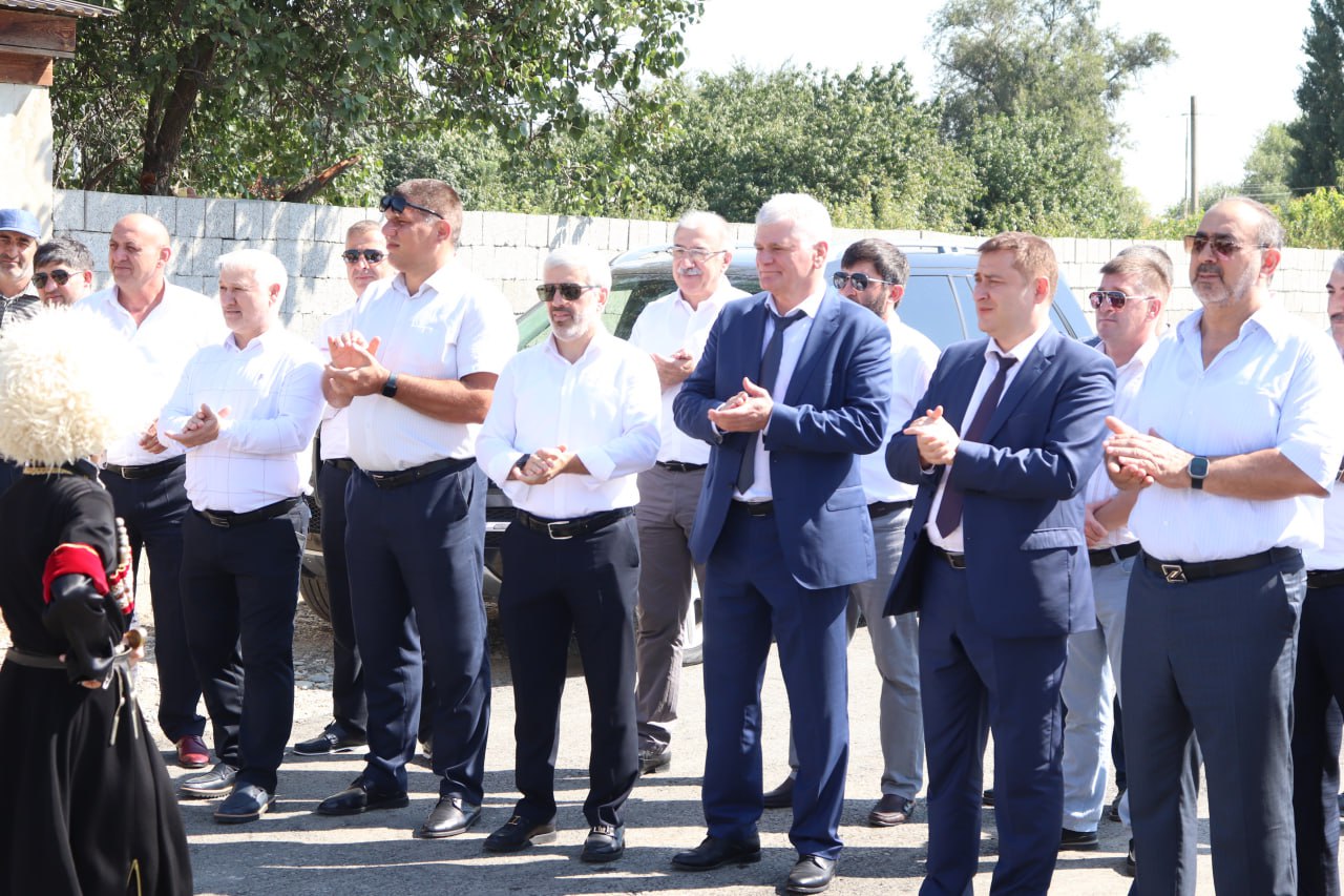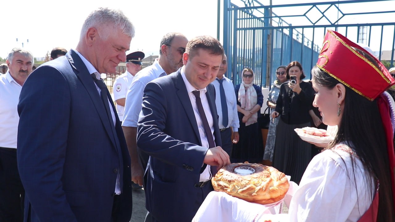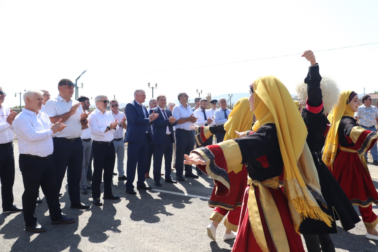 По традиции у входа во двор детского сада прибывшую делегацию встречали с хлебом и солью, а затем торжественно их поприветствовал знаменитый детский хореографический ансамбль «Хадум», продемонстрировав национальный танец, внесший яркий колорит в атмосферу праздника.
