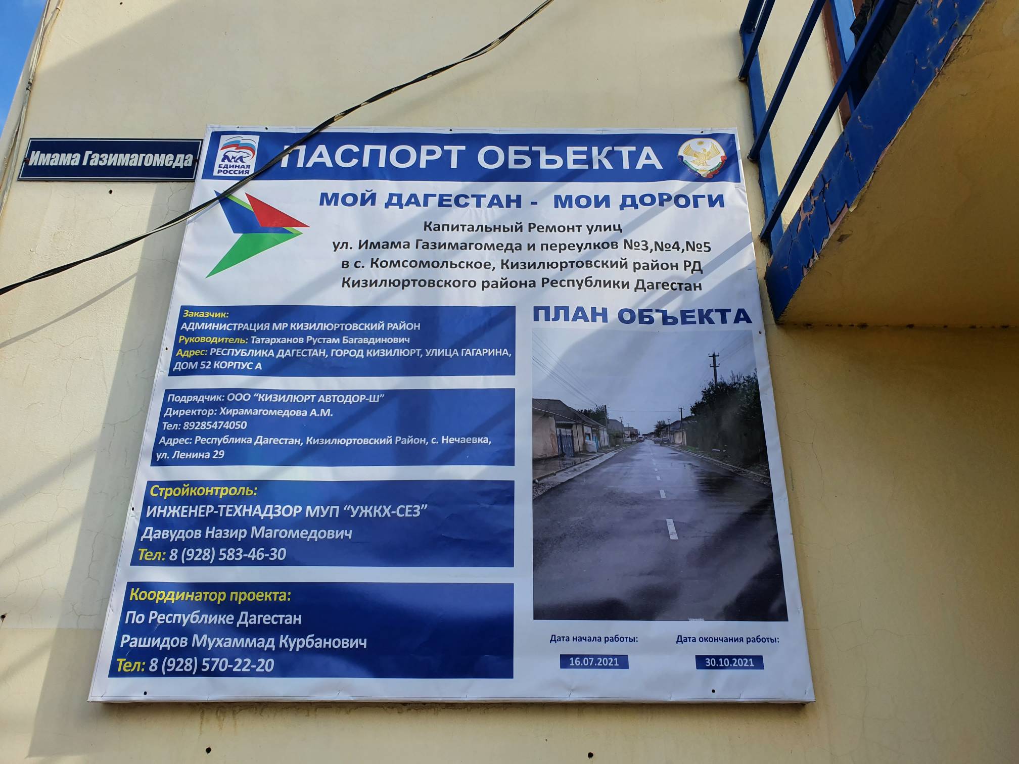 Благодаря республиканскому приоритетному проекту «Мой Дагестан – мои дороги» в селении Комсомольское отремонтируют улицу Газимагомедова и переулки №№ 3, 4 и 5. Общая протяженность улиц, которых коснется ремонт, составляет более 1 600 метров.