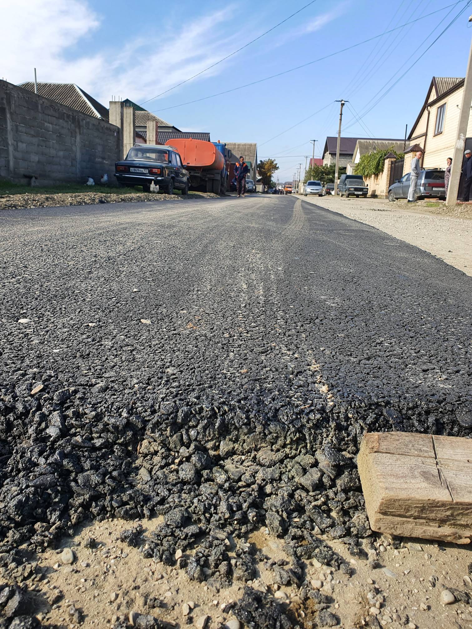 Ремонтом дорожного полотна занимается подрядная организация ОО «Вымпел». В настоящее время рабочие проводят асфальтобетонное покрытие по главной улице — И. Газимагомедова. Главный инженер подрядной организации Али Алиев отметил, что работы будут завершены в течение десяти дней, если не помешают погодные условия.