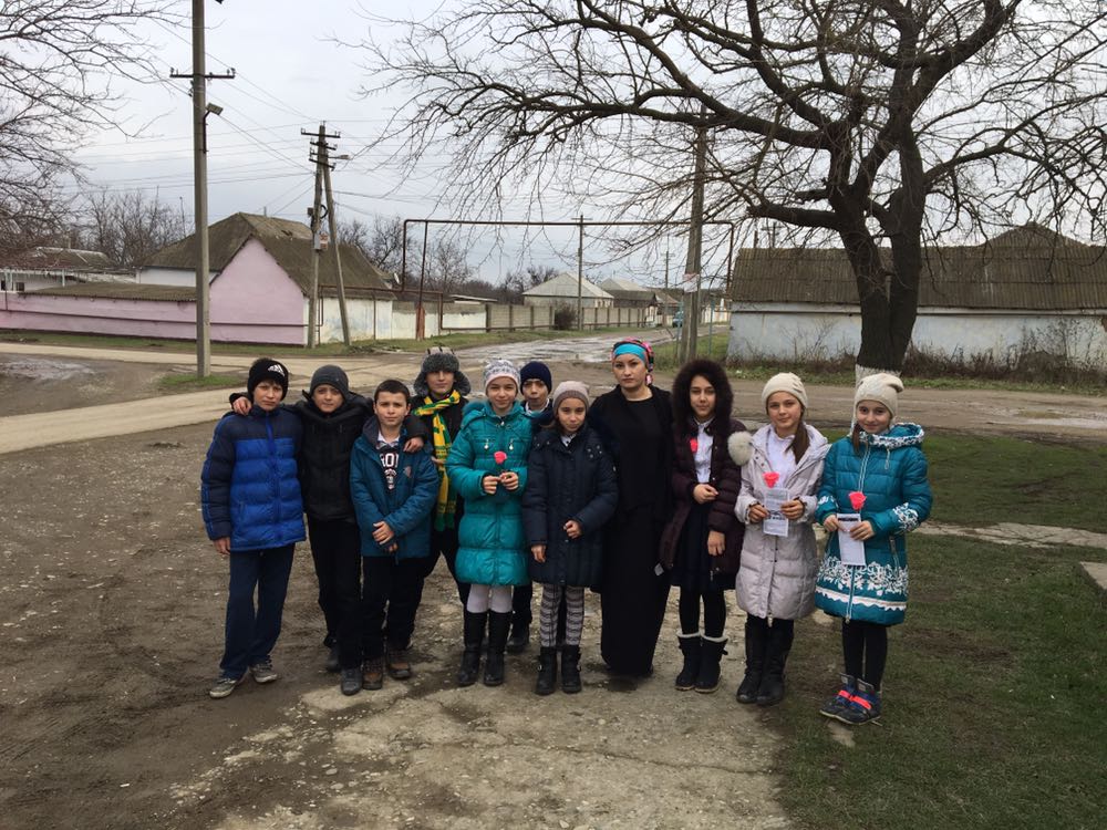 По окончании мероприятия ребята поздравили с государственным праздником страны жителей села, подарив им буклеты и цветы.