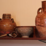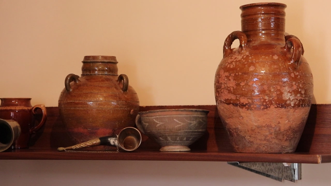 Глиняная посуда и кавказский рог для вина, обрамленный медной вставкой, считавшийся символом изобилия, также, хоть и не забытый, но отголосок древней традиции.