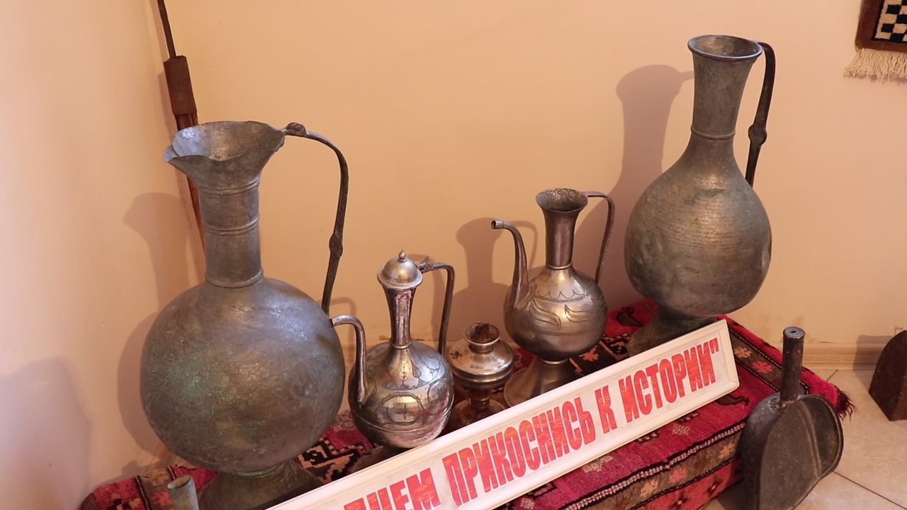 Директор центра может назвать поименно каждого, кто подарил музею экспонаты. Медные подносы «тепси» и здесь же деревянные ступки и ложки разной величины и формы. С более глубоко выдолбленным ковшиком — «гъуд», а с плоским – «бугьун». Медная тара с продырявленным дном, подаренная односельчанкой Умрагим, использовалась для отделения зерен от плевел. Своего рода сито для зерна.