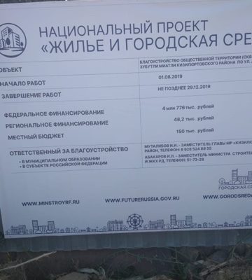На территории Кизилюртовского района появились баннеры с указанием подробной информации о строительных объектах, вошедших в национальный проект «Жилье и городская среда» на 2019 год.