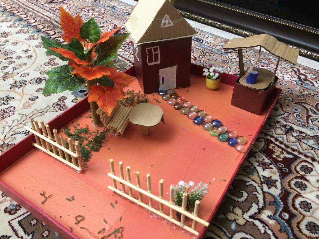 Заведующая библиотекой селения Акнада Джамиля Алиева создает поделки из подручного материала.