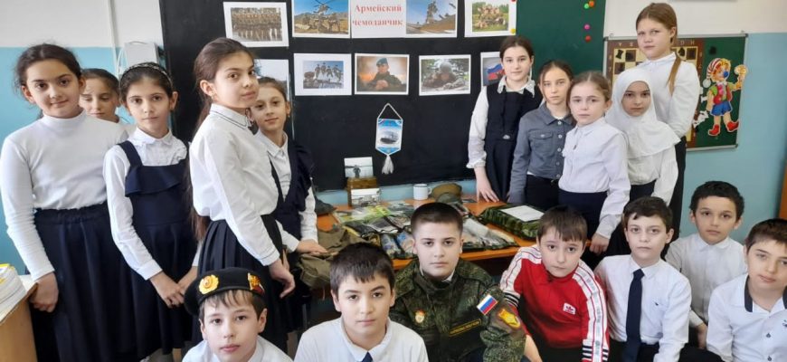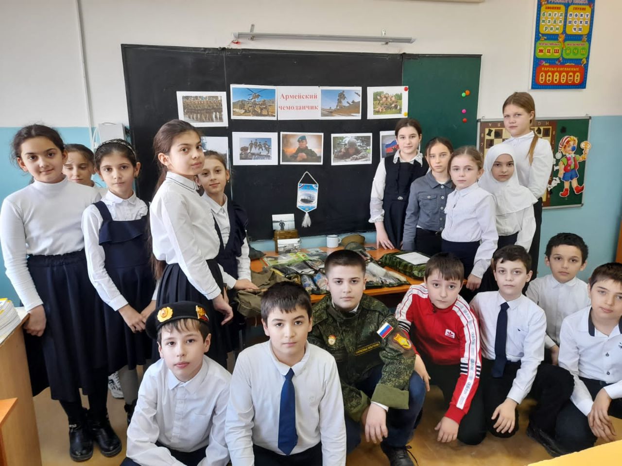 22 февраля Султанянгиюртовская СОШ №2 присоединилась к Всероссийской акции «Армейский чемоданчик». В ее рамках учащиеся приносили в школу предметы армейской жизни членов своих семей, прошедших срочную службу в армии. А также пригласили на акцию участника Афганской войны Мусу Хусейнова.
