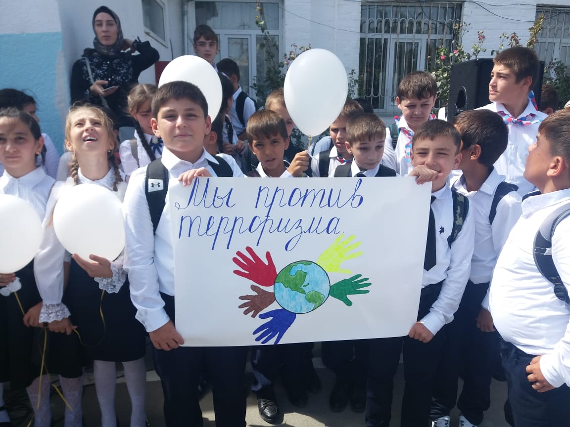 Кизилюртовский район не остался в стороне и во всех школах 3 сентября прошли классные часы, торжественные линейки с привлечением родительских комитетов, работников правоохранительных органов под девизом «Молодежь против террора!».