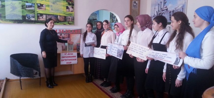 Тематические классные часы прошли в 7г — «Дагестан – наш край родной», 6а — «Образование ДАССР», 7б — «Среди сверкающих вершин», 10 а — «Мой Дагестан» под руководством учителей Х. Ханмурзаевой, М. Минбулатовой, Г. Гасановой и Г. Абукаевой.