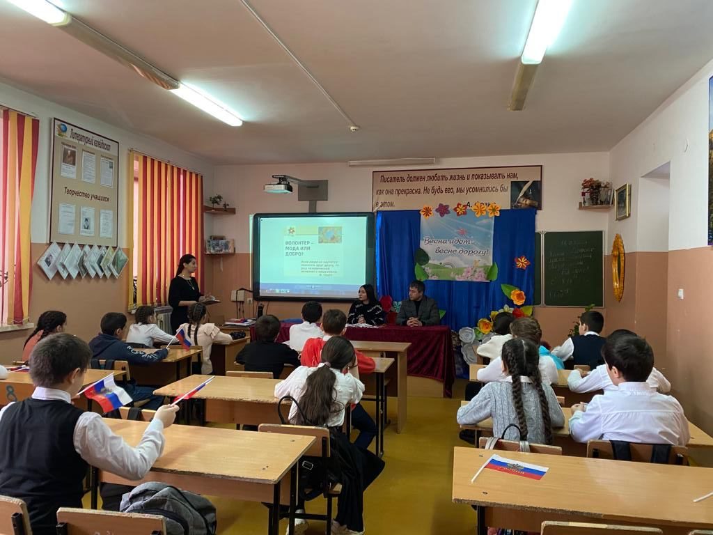 Мероприятие прошло среди учащихся пятых классов. Абдулахидов рассказал ученикам о том, кто же такие волонтеры, чем они занимаются, и что такое добровольческая организация.