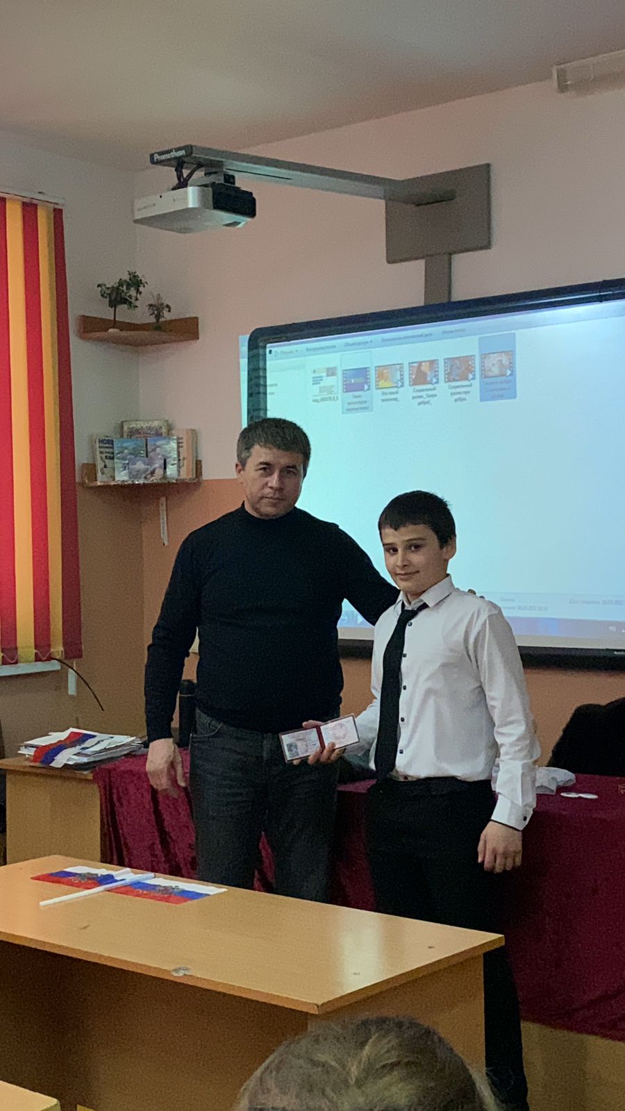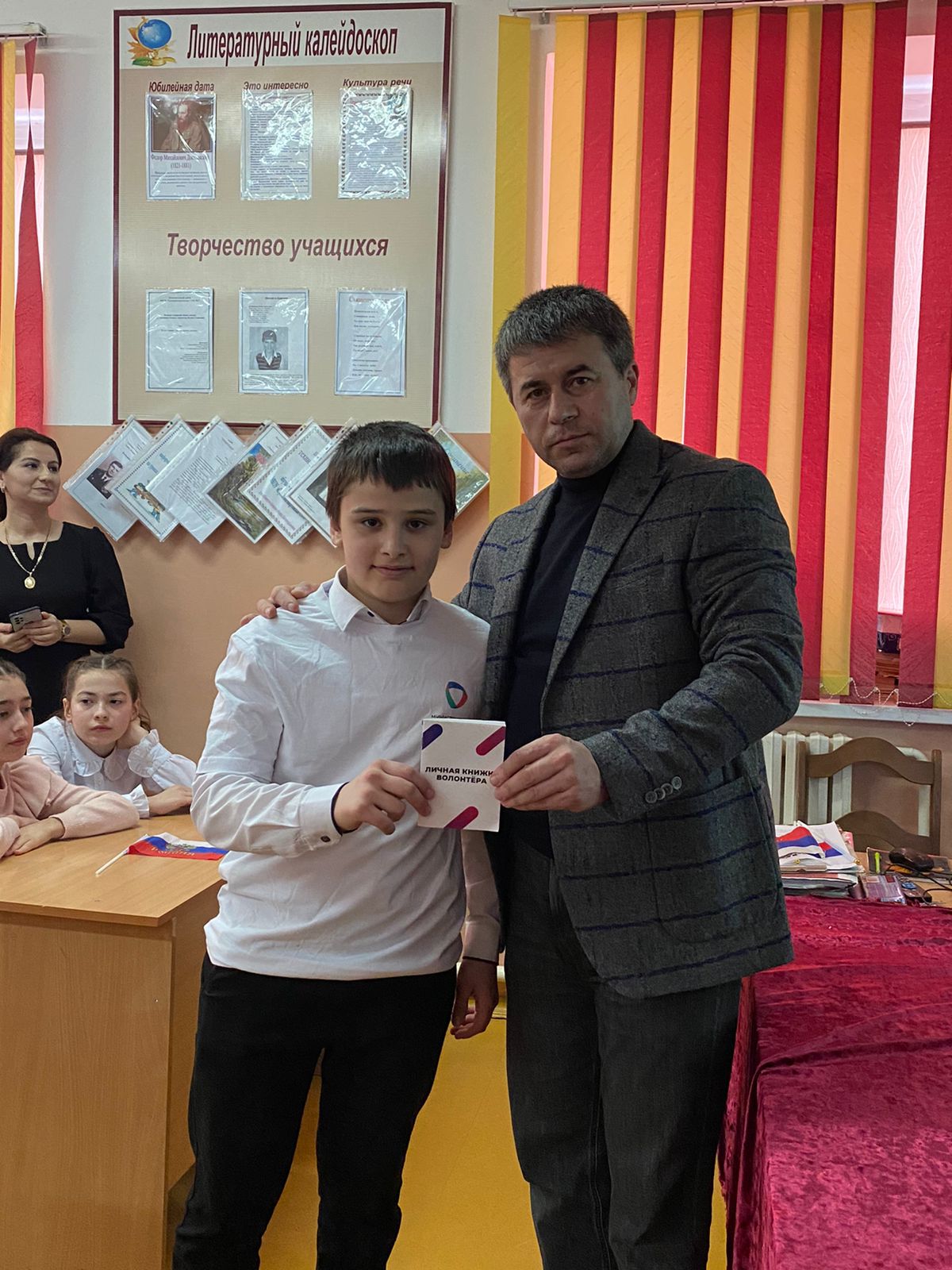 Ученики внимательно слушали выступление гостя, задавали вопросы. А самого активного из них -Магомедхабиба Макаева приняли в волонтерский отряд «Свет добра». В торжественной обстановке ему вручили волонтерскую книжку, футболку и удостоверение.