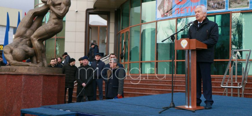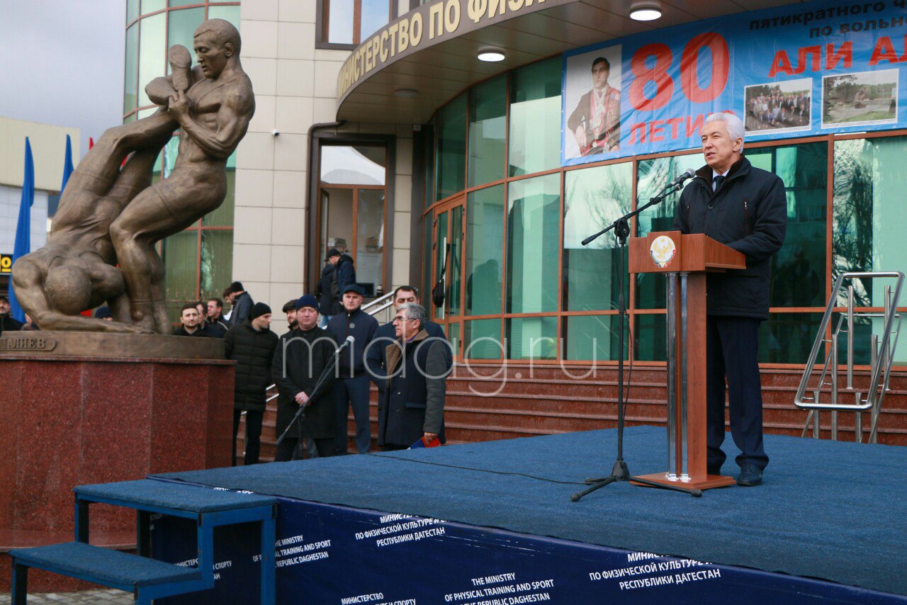 «Сегодня мы открываем памятник прославленному сыну Дагестана, легендарному спортсмену ХХ века, пятикратному чемпиону мира по вольной борьбе, Заслуженному мастеру спорта СССР, Заслуженному тренеру СССР, видному общественному и государственному деятелю, кавалеру орденов Трудового Красного Знамени и «Знак Почета» Али Зулкарнаевичу Алиеву. Радостно сознавать, что это торжественное событие происходит в рамках подготовки к чемпионату Европы по спортивной борьбе, который пройдет в нашей республике весной 2018 года. 29 ноября Али Алиеву исполнилось бы 80 лет. Глядя на этот памятник, участники и гости соревнований вспомнят о блестящих достижениях нашего прославленного борца, пример которого доказывает, что труд и вера в себя помогают осуществить самые смелые мечты», — сказал Владимир Васильев, открывая значимое для республики мероприятие.