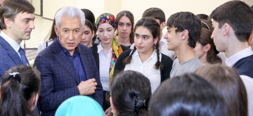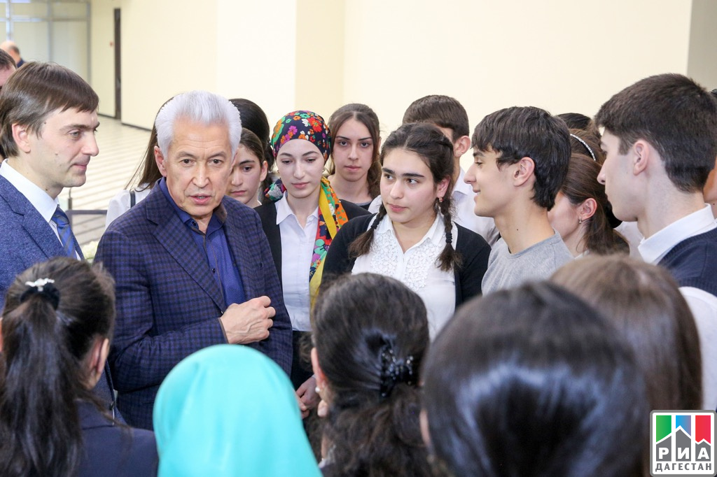 В воскресенье, 28 января, врио Главы Дагестана Владимир Васильев и заместитель министра образования и науки РФ – руководитель Федеральной службы по надзору в сфере образования и науки Сергей Кравцов в мультимедийном историческом парке «Россия – моя история» в Махачкале встретились с участниками регионального этапа Всероссийской олимпиады, сообщило РИА «Дагестан».