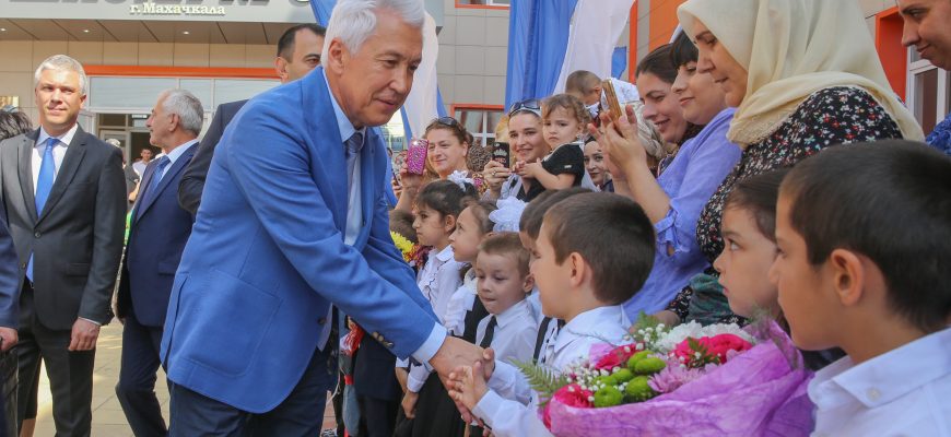 Сегодня, 1 сентября, Владимир Васильев принял участие в открытии школы №61 в микрорайоне Эльтав города Махачкалы.