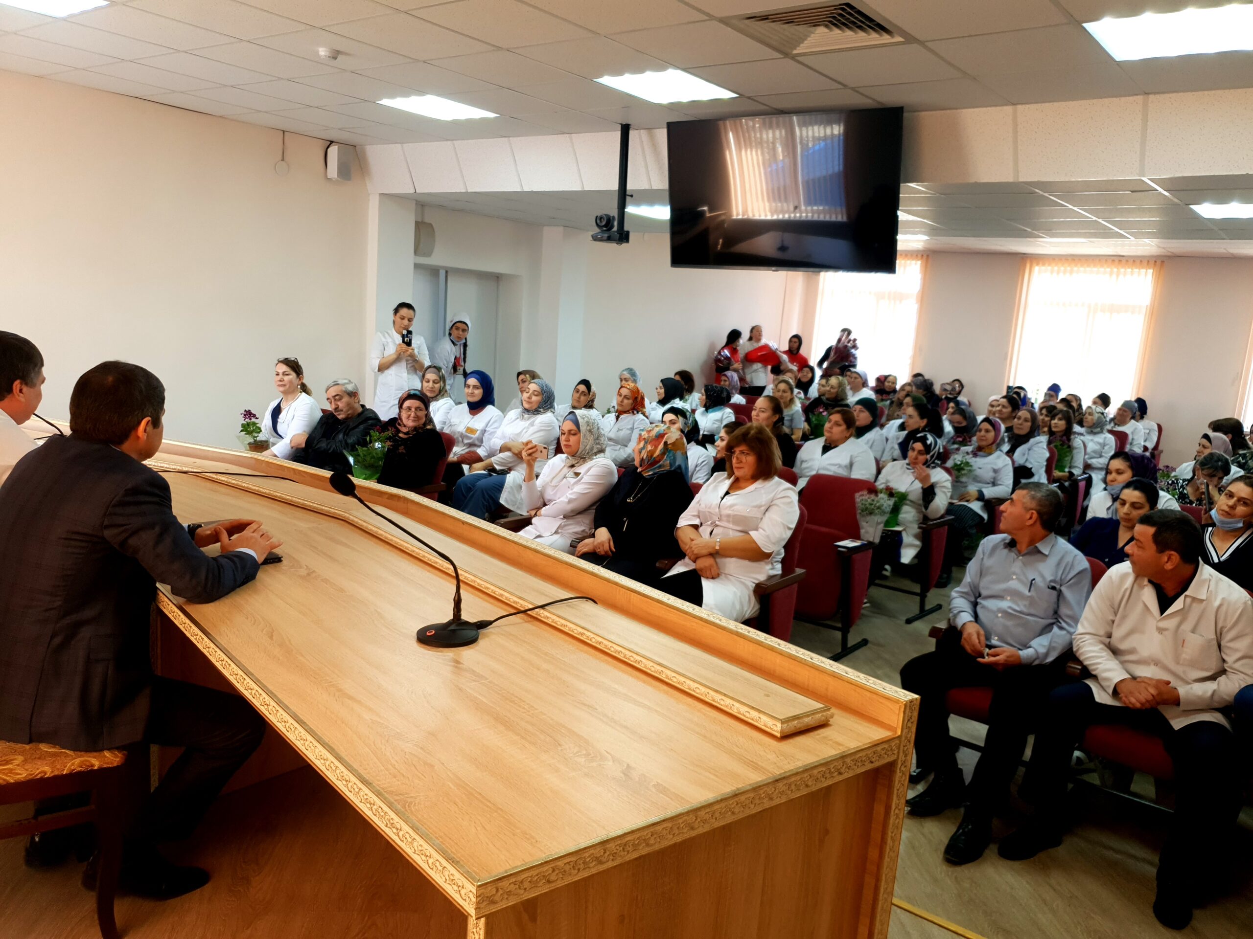 5 марта волонтеры-медики Добровольческого центра «Свет добра» совместно с заместителем главы администрации Кизилюртовского района Ибрагимом Муталибовым и руководителем отдела культуры, физкультуры и спорта, туризма и молодежной политики администрации Магомедгаджиявом Кадиевым поздравили прекрасную половину медицинского персонала Центральной районной больницы с праздником 8 Марта.
