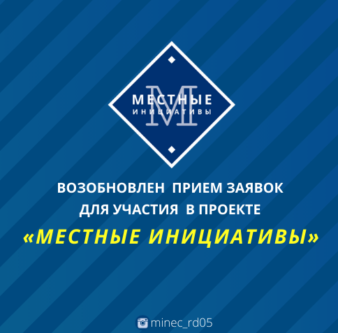 По информации пресс-службы Минэкономразвития РД Министерство экономики и территориального развития Республики Дагестан в соответствии с пунктом 10 Порядка проведения конкурсного отбора проектов местных инициатив муниципальных образований РД для получения субсидий на их реализацию, утвержденного постановлением Правительства Республики Дагестан № 110 от 25 апреля 2016 года, возобновляет прием заявок для участия в проекте «Местные инициативы».
