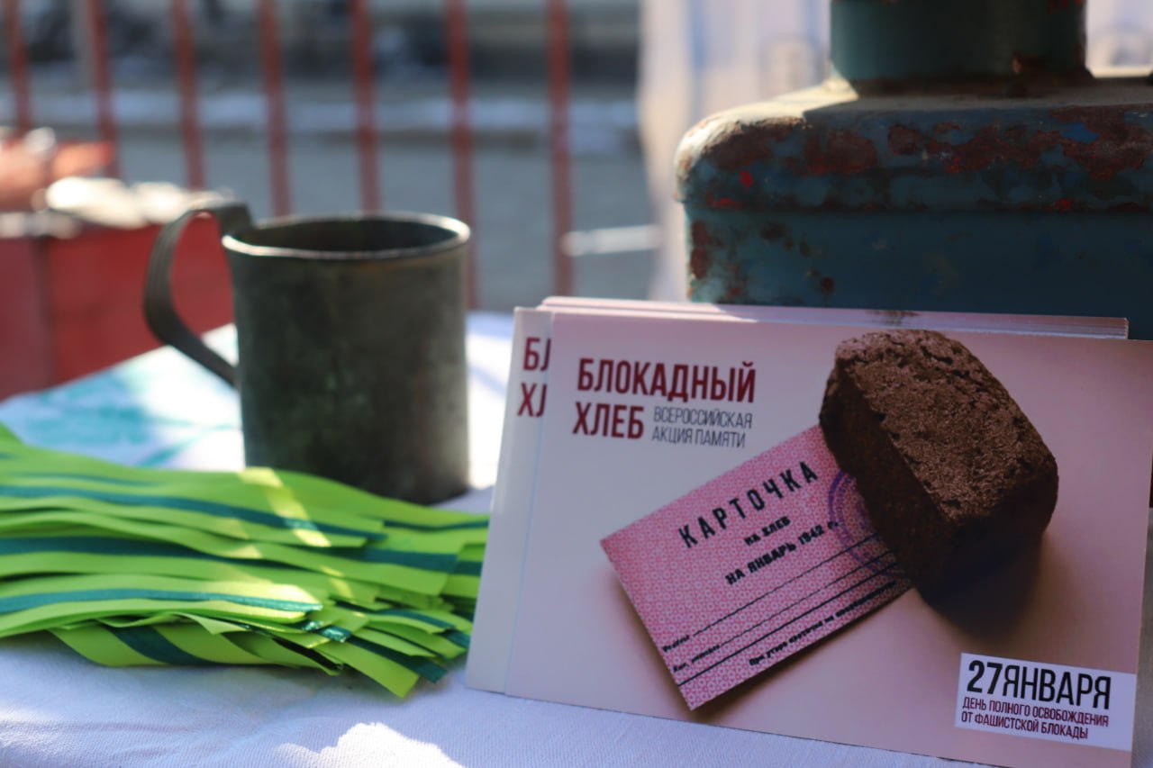 После чтения стихов, спетых песен и рассказанных историй, присутствующим участникам мероприятия вручили «Карточки на хлеб», с которыми каждый желающий проходил к работникам библиотеки и получал свою порцию хлеба. По 125 граммов — суточная норма на человека в блокадном Ленинграде.