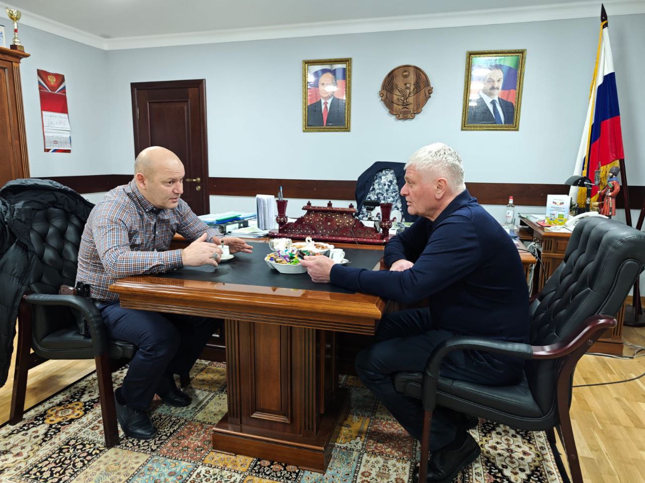 На днях в Кизилюртовском районе состоялась значимая встреча, подчеркивающая приоритет внимания к участникам специальной военной операции и их семьям. Глава района Рустам Татарханов принял у себя Мансура Ашалмагомедова, жителя селения Зубутли-Миатли, который в настоящее время проходит службу в зоне СВО в должности начальника продовольственной службы 6-й мотострелковой дивизии.