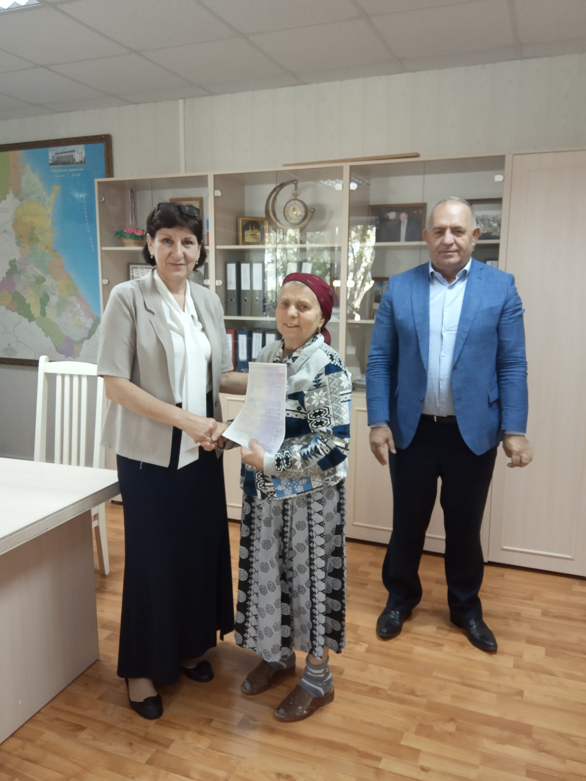 С 2001 года Патимат Курбаналиева, проживающая на данный момент в съемном доме в селении Комсомольское, имеет статус вынужденного переселенца,а с 2002 года стоит в очереди на получение жилой помощи.