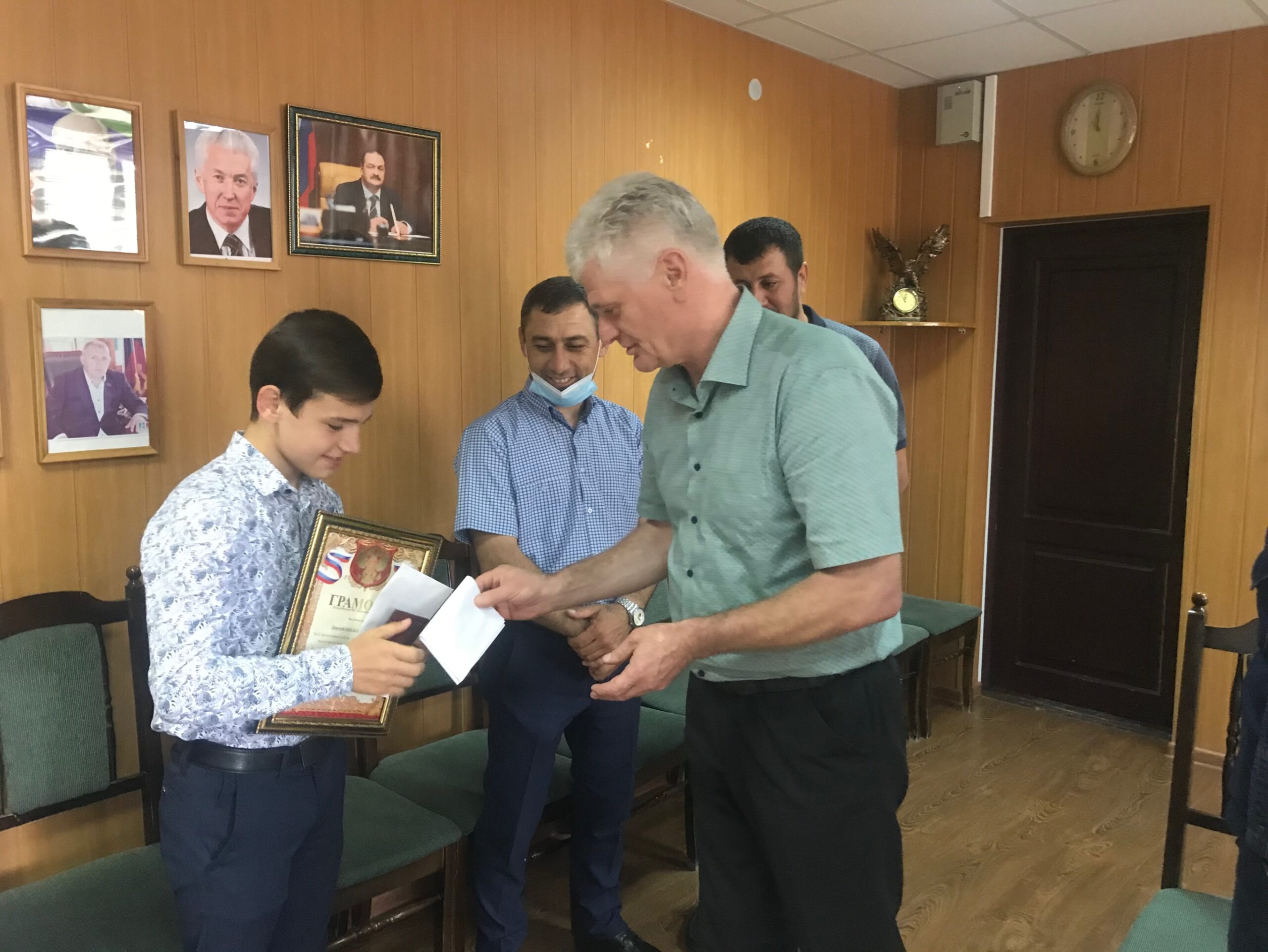 Рустам Татарханов вручил ему удостоверение и значок мастера спорта России.Обещал оплатить следующую поездку на российские соревнования.