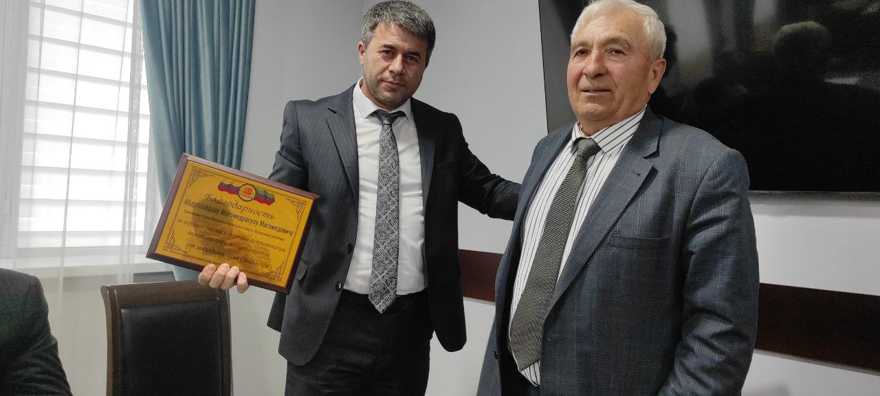 Почетной благодарностью за активное участие в спортивно — патриотическом воспитании подрастающего поколения села также был награжден и начальник отдела физической культуры, спорта и молодежной политики администрации района Магомедрасул Абдулахидов.