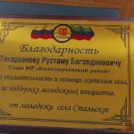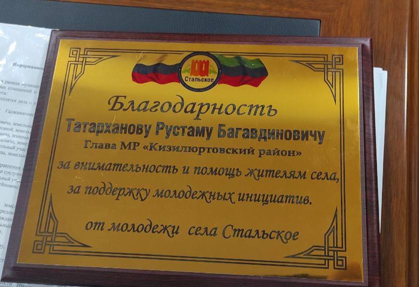 Сегодня, 3 апреля, в администрации района глава сельского поселения Стальское Саит Абдумажидов вручил Благодарность главе Кизилюртовского района Рустаму Татарханову за внимание, помощь жителям села и поддержку молодежных инициатив.